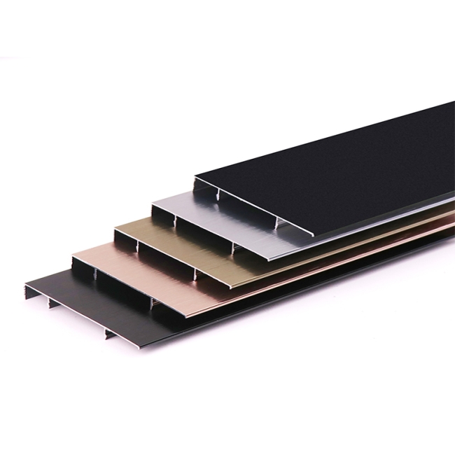 背面卡扣打螺丝钉子安装,可定制颜色搭配场景风格,拉丝工艺丝滑质感,坚固不易变形,耐磨耐用,防潮防水,平面设计,金属质感,全新型踢脚线。